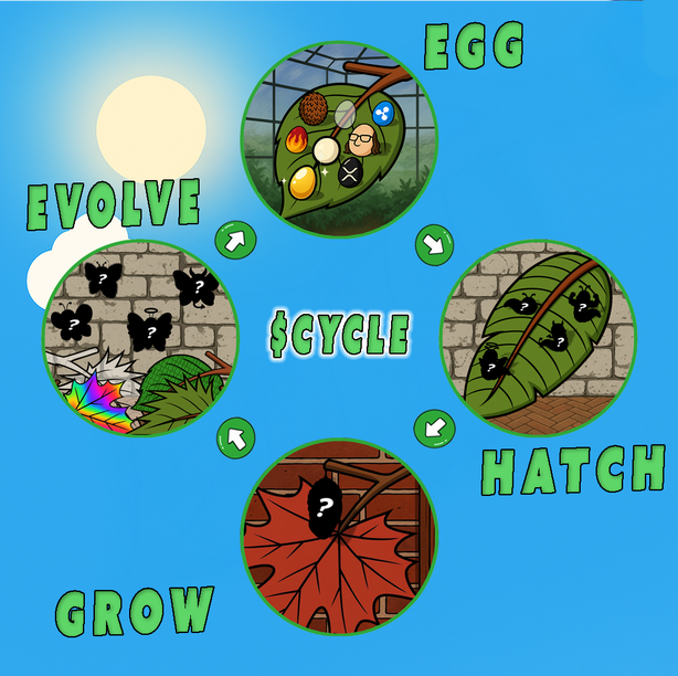 Cycle of Life ($CYCLE) bridges this natural rhythm with digital art and tokenized utility. Each NFT represents a leaf bearing caterpillar eggs